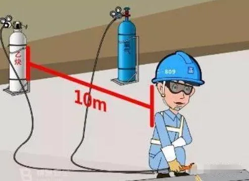 ①可燃、助燃气体气瓶离明火距离不得少于10米。
